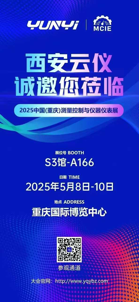 作為測量控制與儀器儀表領域的標桿展會,2025中重慶儀表展聚焦技術創新與產業升級,全面覆蓋工業自動化、智能檢測、傳感器、精密儀器等全產業鏈。西安云儀參展的眾多智能化、高精度、高穩定性儀器儀表,為儀表行業的智能化發展注入強勁動力,我們誠邀業界同仁于展會期間蒞臨我們的展位S3館-A166共同探索工業自動化儀表的前沿技術與發展趨勢。